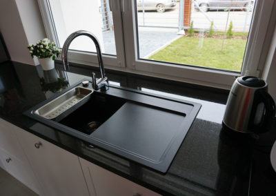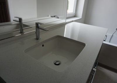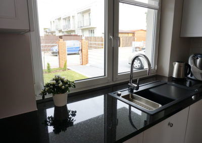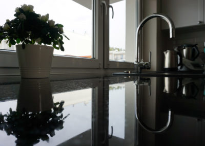 Moja firma zajmuje się również kamieniarstwem budowlanym. Robimy kamienne schody, posadzki, parapety czy kominki ale przede wszystkim blaty kuchenne i łazienkowe. Zdobyte doświadczenie sprawiło, że moje realizacje przez kilkanaście lat nie straciły na swoim blasku.